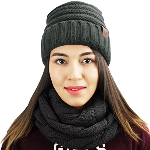 This scarf and beanie set will keep you warm during the chilly season. The scarf is knitted in a thick pattern for extra warmth and can be worn double looped or long. The beanie can be worn slouched down or as a traditional beanie and provides great coverage over the entire head and ears. The perfect accessories for winter.