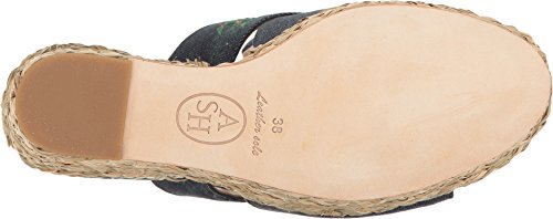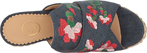 Product DescriptionFloral embroidery details the wide denim straps on these towering Ash sandals. Braided raffia trim wraps around the wedge platform. Rubber heel cap at leather sole.0