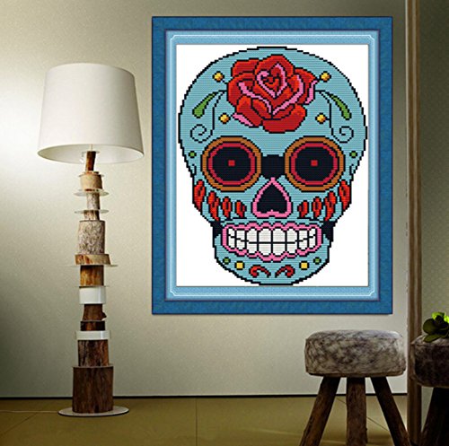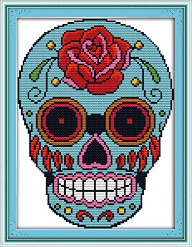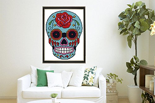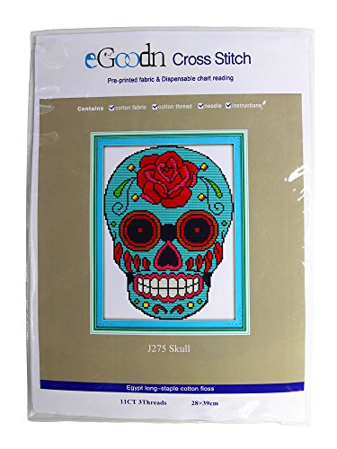 eGoodn Cross Stitch Stamped Kits 11CT 3 Strands 11”X15.4” Cross-Stitching Accurate Pre-printed Pattern - Skull, Handmade Needlework Set Embroidery DIY Home Decoration Without Frame