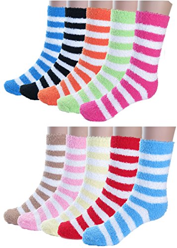 -. Feature : Picture displays an assortment of colors. Each order is a random mix of 6 pairs. / Soft and stretchy material. Add extra warmth and comfort to your feet with these fuzzy winter socks. / size 9-11. Fits women's shoe size 4-9 / measures: inches. Crew style provides extra coverage. Hits around mid-calf / Comfort lounging socks. Warm and ultra soft suitable for cold winter months.