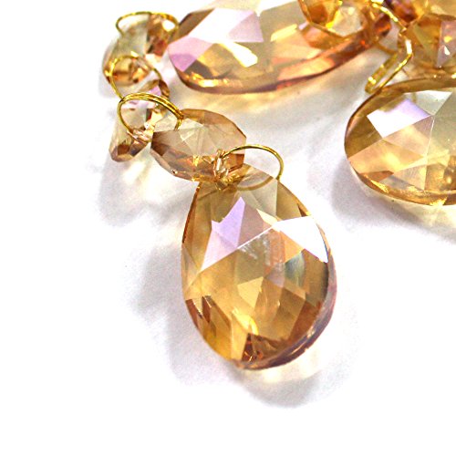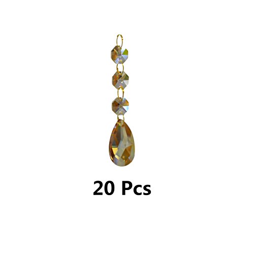 SuZhi 20 Pack Crystal Teardrop Chandelier Prisms Pendants Parts Beads (Amber)