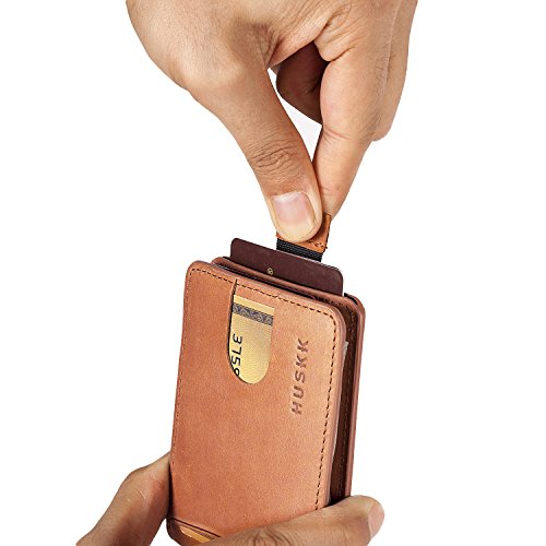 Slim Card Holder Front Pocket Wallet - Money clip - Minimalist Leather Credit Card Sleeve - Men - HUSKK - Dark Brown