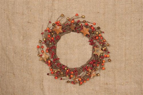 Your Hearts Delight Berries with Rusty Stars Wreath, 6-Inch, Burgundy and Orange