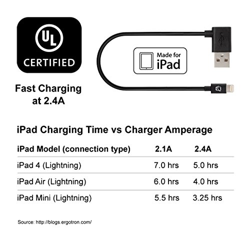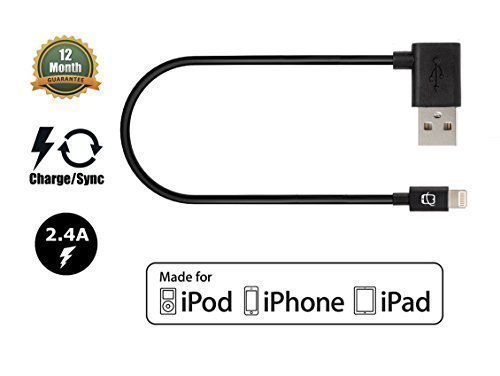 APPLE MFI CERTIFIED - Lightning to Angled USB cable with support for iOS 7, 8, 9, 10 and future iOS versions (no error messages)