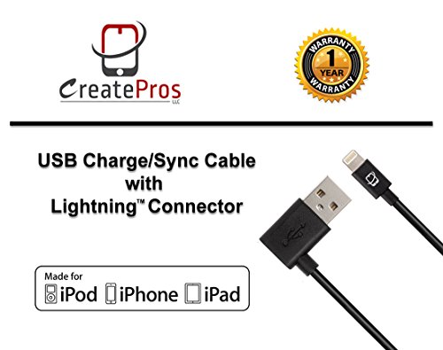 CreatePros Apple Certified Lightning to Angled USB Cable for iPhone, iPad and iPod - 11 Inches (28 Centimeters) - Black