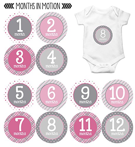 Months in Motion 295 Monthly Baby Stickers Milestone Age Sticker Photo Prop Newborn Girl Pink