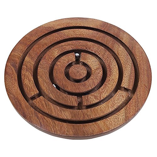 In the shaped of a large round disc, it has deep grooves carved into the surface for the balls to move about when the toy is rattled, jostled, tipped and shaken