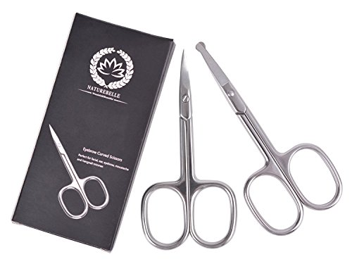Eyebrow and Nose Hair Scissors, 3.7” Stainless Steel Professional Facial Hair Beard Eyelashes Ear Hairs and Moustache Scissors Trimmer 2 Pieces by NATUREBELLE