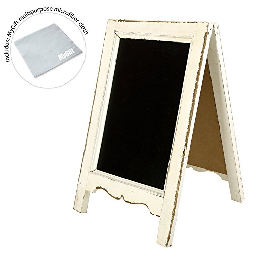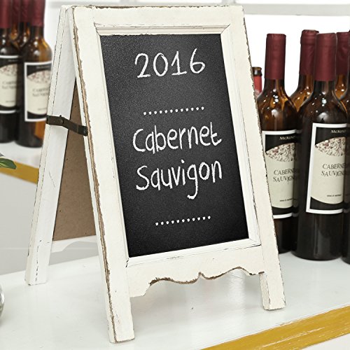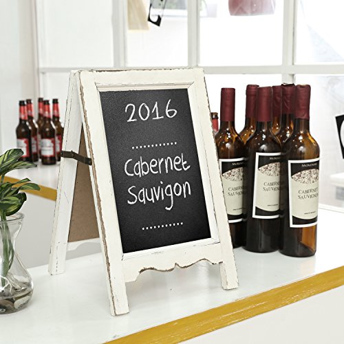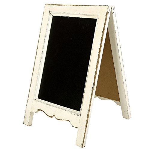 MyGift 15 Inch Wood A-Frame Chalkboard Sign, Double Sided Rustic Message Board, White