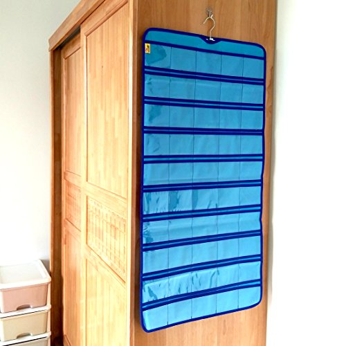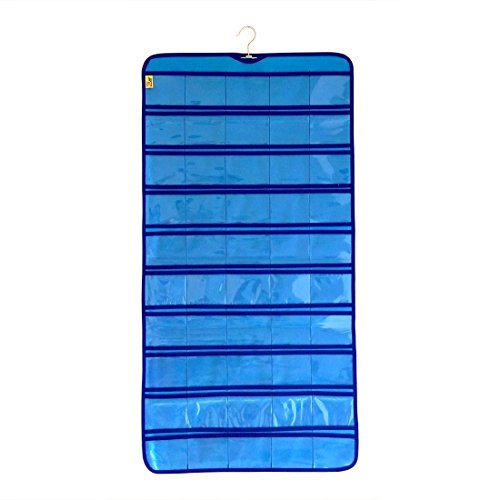 NIMES Hanging Jewelry Organizer Hanging Closet Storage Clear Pockets (50 Pockets, Blue)