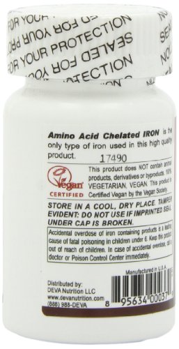 -. Binding : Health and Beauty -. Brand : Deva Vegan Vitamins -. Label : Deva Vegan Vitamins -. Manufacturer : Deva Vegan Vitamins -. PackageQuantity : 1 -. ProductGroup : Health and Beauty -. ProductTypeName : HEALTH_PERSONAL_CARE -. Publisher : Deva Vegan Vitamins -. Studio : Deva Vegan Vitamins -. Title : Deva Vegan Vitamins Chelated IRON Vegan