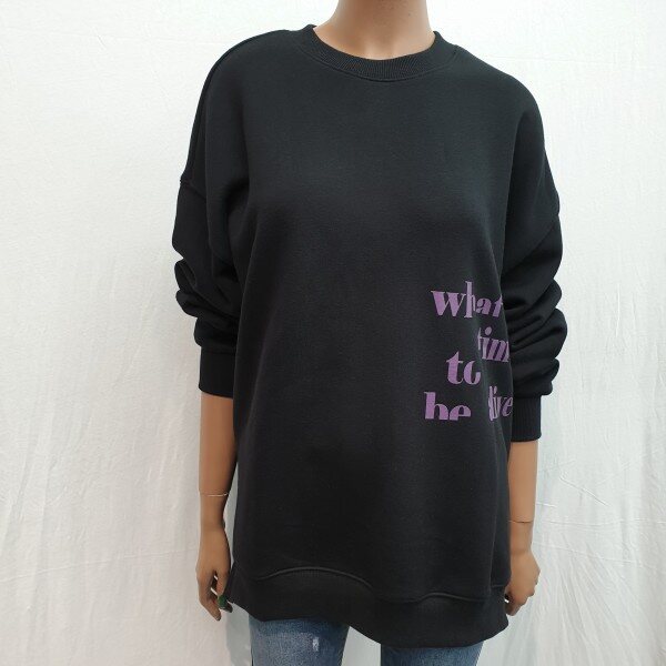 2018년 신상입니다. 심플한 레터링이 가슴 아래쪽에 들어가 베이직하게 입기 좋으며 기모 소재를 사용하여 겨울까지 착장 가능한 제품입니다. 직원 추천 아이템입니다!