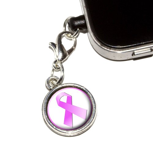 Graphics and More Breast Cancer Pink Ribbon Anti-Dust Plug Universal Fit 3.5mm Earphone Headset Jack Charm for Mobile Phones - 1 Pack - Non-Retail Packaging - Antiqued Silver