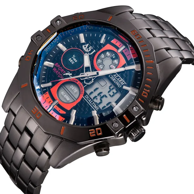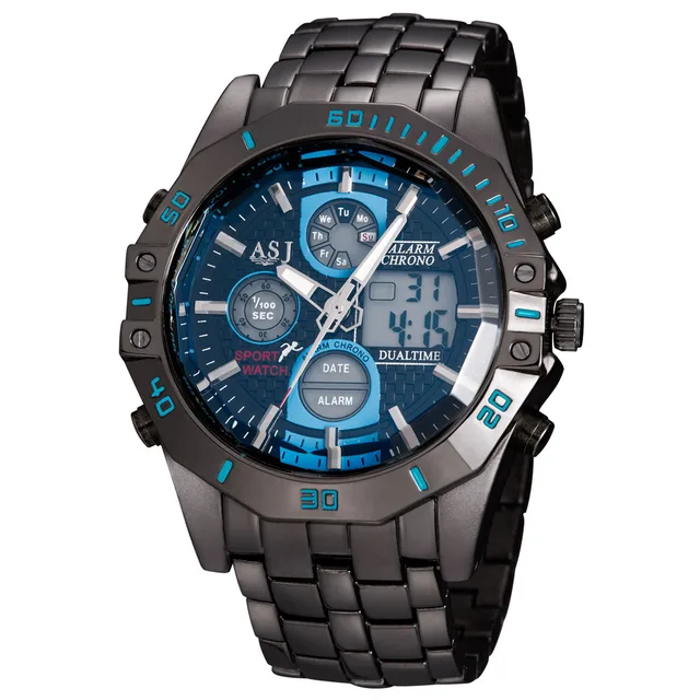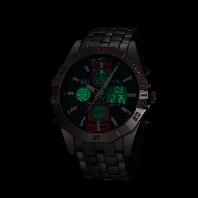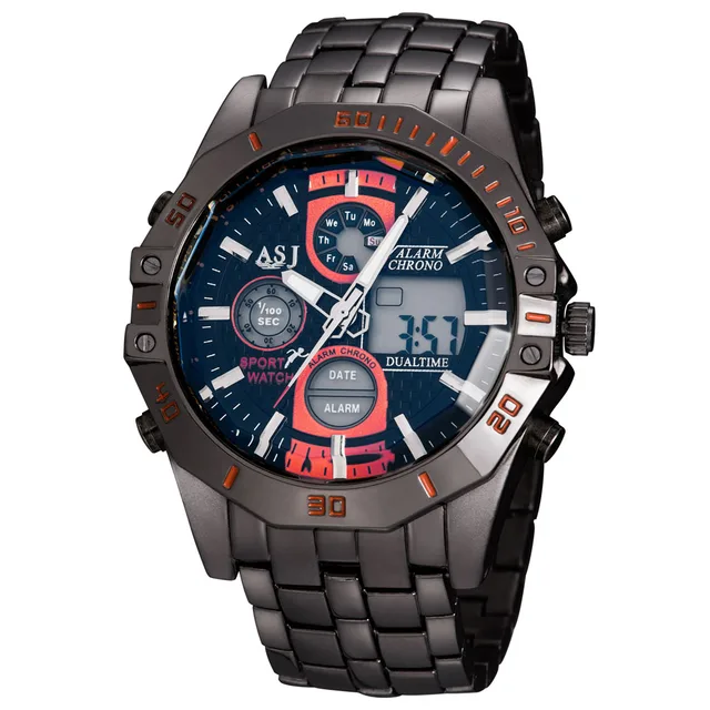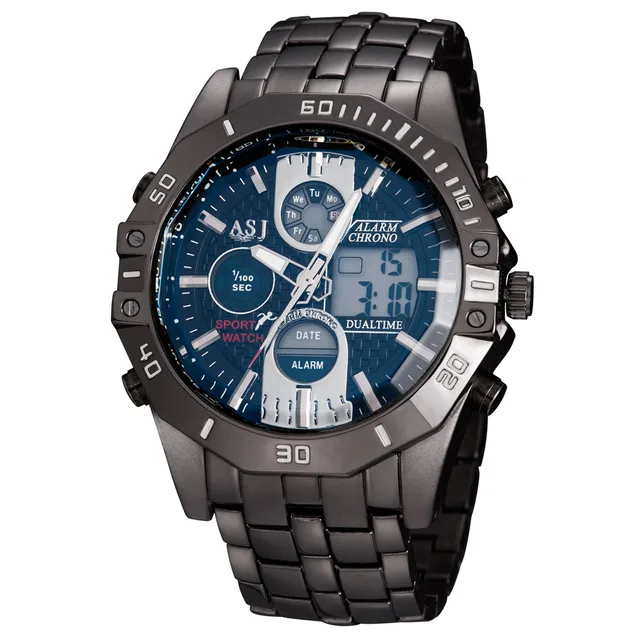 | [해외] 새로운 패션 세련된 스포츠 물 증거 스틸 Asj 시계 육군 디지털 Anolog 남성 군사 야외 손목 석영 수영 시계 |