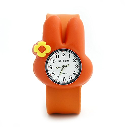 -. Title : Vavna Lovely Top Boys Girls Fashion Cartoon Animal Silicone Slap Snap On Wrist Watch - Orange Rabbit
