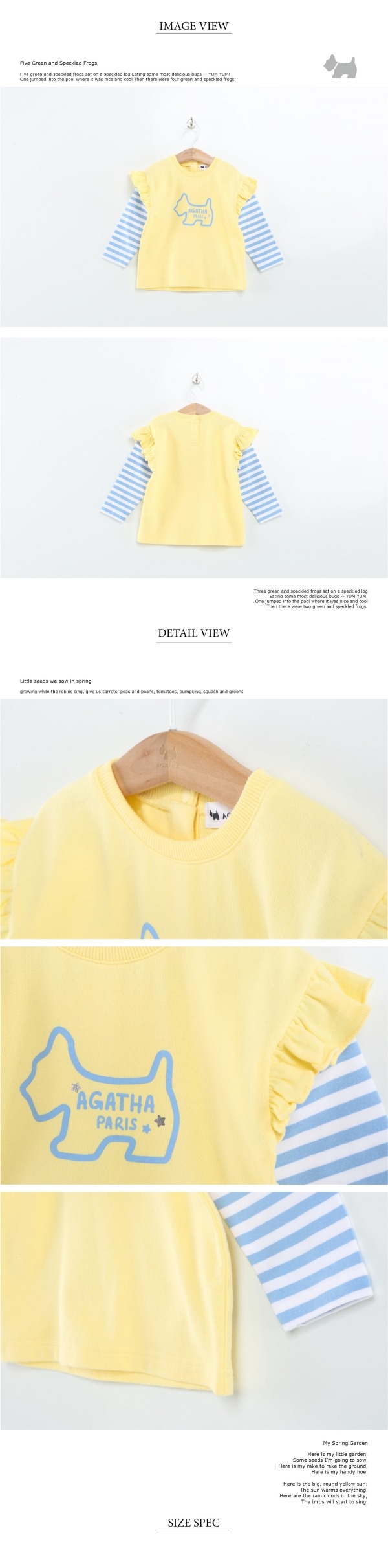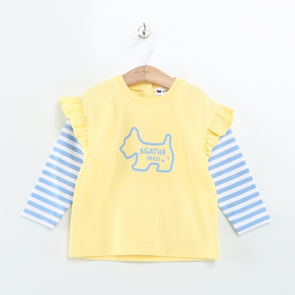 어깨 프릴단과 아가타 나염으로 포인트를 준 귀여운 레이어드 티셔츠입니다.