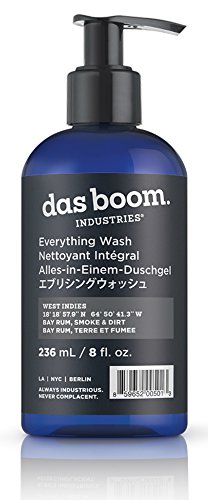 Das Boom's West Indies Everything Wash is an exotic blend infused with essences of bay rum, smoke and dirt. Use this one-stop wash to scrub up everywhere from head to toe. It's good clean fun.How to Use: Get wet, scrub down, rinse.
