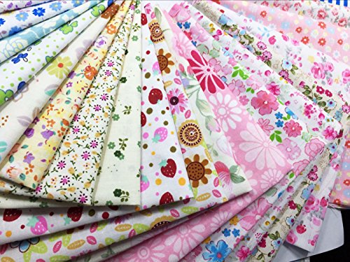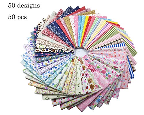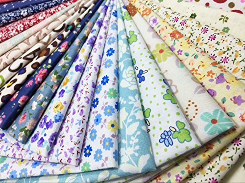 levylisa 50 PCS Assorted Flower Printed Cotton Squares Quilting Fabric, Patchwork Fabric precut Fabric Quilting Sewing Fabric Patchwork Flower Dots DIY quilting Handmade Craft 12 x 12 Inches