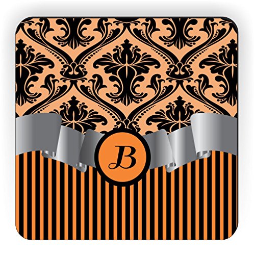 Rikki Knight Letter "B" Initial Orange Damask and Stripes Monogrammed Design Square Fridge Magnet