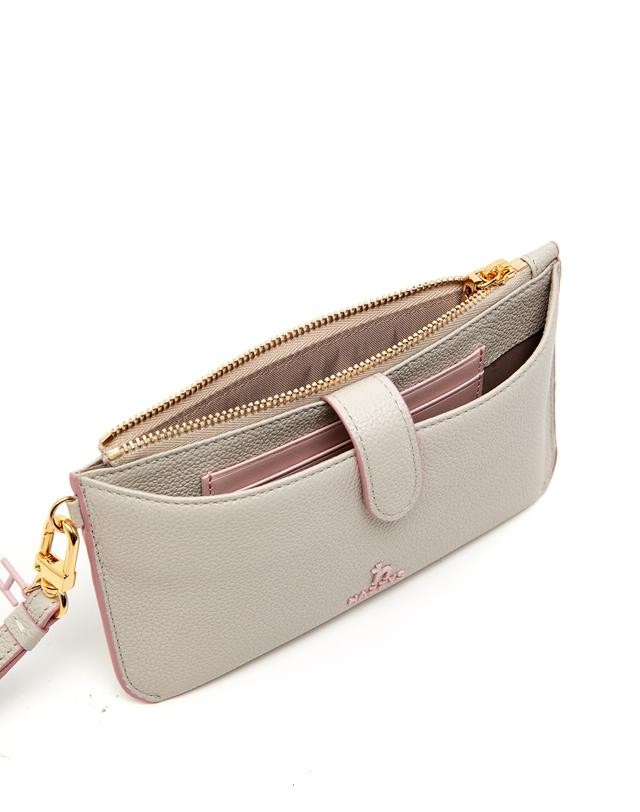 사랑스러운 그레이 컬러바탕에 스퀘어 쉐입의 디자인과 하단 로고로 포인트를 준 카드홀더 입니다.