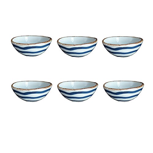 FUYUAN Set of 6 Blue and White Porcelain Bowls Set for Rice/Cereal/ Dessert/Soup /Fruit---6 inches