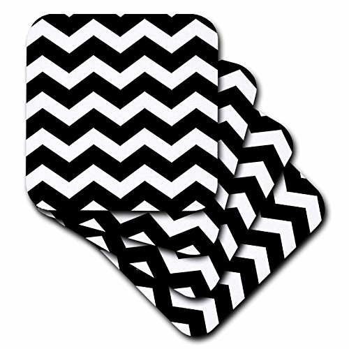 3dRose cst_179670_3 Black and White Chevron Zig Zag Pattern-Stylish Big Bold Zigzags-Ceramic Tile Coasters, Set of 4