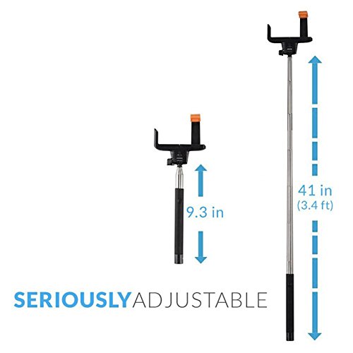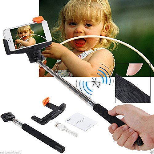 Quirkio Selfie Stick - Extendable Monopod Handheld Built-in Bluetooth Remote Shutter Wireless Selfie Stick Adjustable Grip Holder for Iphone IOS Samsung HTC Android Lg Phone Quality Guarantee (Black)