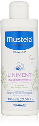 Mustela Liniment is a 2-in-1 diaper change lotion that cleans and moisturizes your baby's delicate skin at each and every diaper change. This natural cleansing lotion will simplify your diaper change routine and leave your baby's skin feeling soft and smooth. Mustela Liniment’s skin soothing nutrients create a moisturizing barrier that provides long-lasting hydration for your baby’s diaper area. Mustela Liniment is fragrance-free and safe to use on the most sensitive skin. Our formula contains 99% natural ingredients, is enriched with extra virgin olive oil and is packed with nourishing omega-6 and omega-9. To clean your baby’s skin, simply wipe Mustela Liniment on your baby's diaper area using a soft cloth or cotton pad -- no need to rinse with water! Follow with Mustela Diaper Rash Cream 123 for added rash prevention and protection. Paraben, Phthalate, and Phenoxyethanol free. Hypoallergenic, and specially formulated to minimize the risk of allergic reactions. Tested under pediatric and dermatological control.Feature