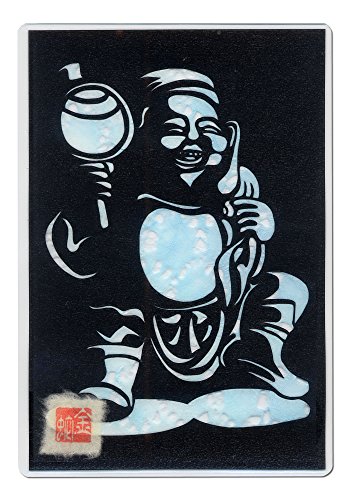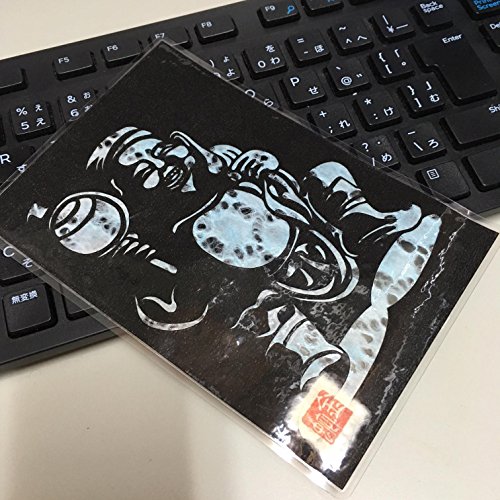 Cutout picture Japanese art collage KIRIE “Seven Lucky God · Daikokuten” Seven Deities(Gods) of Good Fortune Made by Washi(Japanese paper) Blurred sky blue, 4” x 6”
