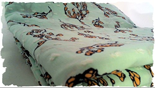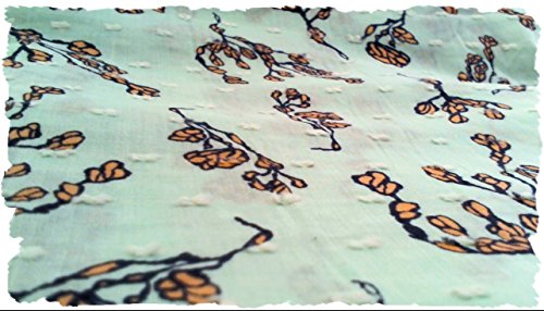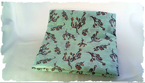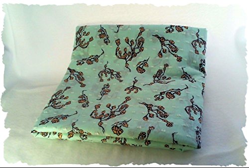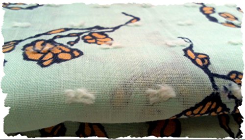 2 yards x 56" Fabric, Light Seafoam Green with Coral Orange Floral Pattern, Cotton Blend, Single Length Pre Cut, 56"x72"