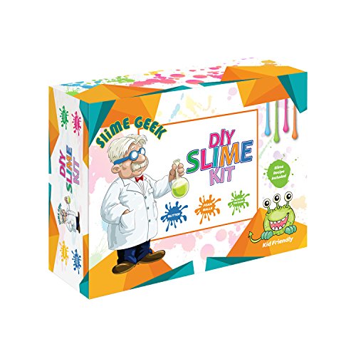 -. Feature : BONUS ITEM: You will receive a bonus recipe with instructions on how to make slime with your order as well as an E-book entitled "The Science of Slime". The E-book will give you a full rundown on the history of slimes, as well as how to experiment even further with your slime kit. Great educational bonus for science lovers. / INCLUDES: 2 Elmer's School Glue, 1 Elmer's Washable Clear Glue, 4 Different Color Neon Paint, Foam Beads, Glow Powder, 2 Glitter, Stir Sticks, 4 Containers / TERRIFIC GIFT IDEA: Looking for that perfect something to please a picky child? Look no further- the Slime Geek DIY Kit is guaranteed to bring an ear-to-ear smile on their face! Not only does this set provide a fun, all-day-long activity that immerses kids in quality sensory play, they'll be able to store their slime masterpieces and play with them over and over again! Perfect for birthdays, Christmas, or just because. / AIR TIGHT STORAGE: All ingredients come sealed in air tight containers for soil free mess. Also included are 2 spare containers to store your slime once done. / HAVE FUN AND BE CREATIVE: The experiments are limitless. Use your imagination to make the best slime ever.