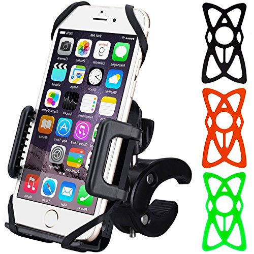 RVZHI Bike Phone Mount, Universal Bicycle Motocycle Holder Accessories for iPhone Samsung Smartphone GPS Devices, with One-button Released, 360 Degrees Rotatable, 3 Colors Rubber Straps