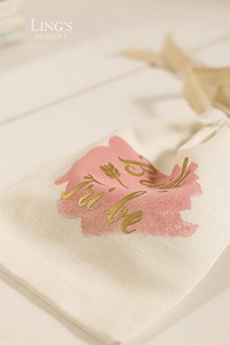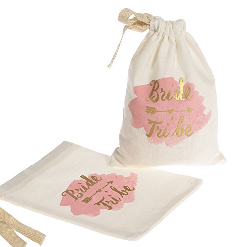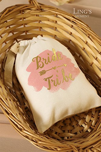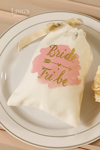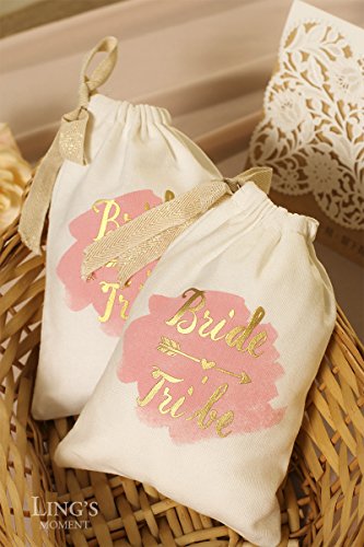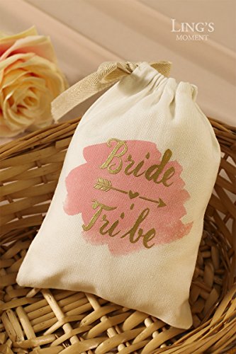 Ling’s moment 10pcs 5”x7” Gold Foil Sparkly BRIDE TRIBE and Pink Watercolor Cotton Muslin Favor Bag with Drawstring For Wedding Bridal Shower Bachelorette Party Avoid Hangover Kit Favor Bag