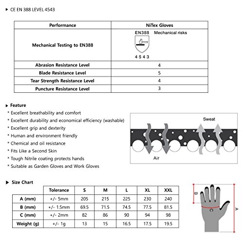 NiTex CUT5-L5 EN388 Certified Level 5 Cut Resistant Work Gloves for Gardening Builders Mechanic Multi-Purpose (L, 5 Pairs)