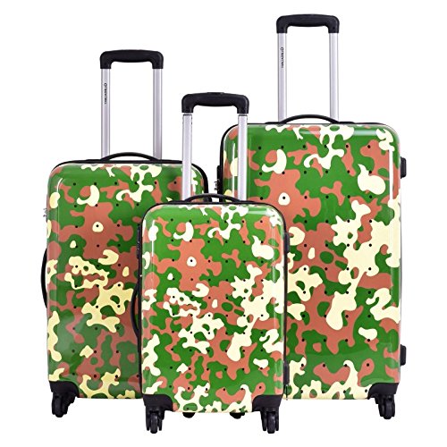 Product Description Get yourself this all new travel cases with this forest camouflage design. This is fun and totally durable to carry your stuff. A great item to have. Set includes: 3 Suitcases Features: Lightweight, Spinner, Hardsided, Fashion and Durable | Materials: Plastic 0