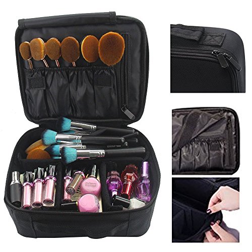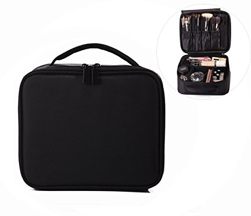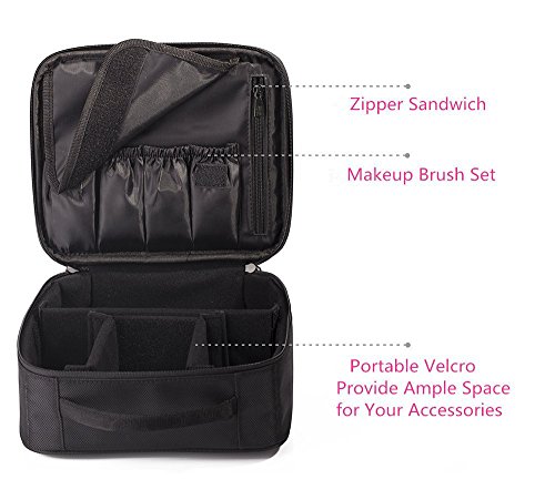 Travelmall Professional MakeUp Train Case Portable Makeup Cosmetic Bag Make Up Artist Organizer Compact size Velcro Travel Organizer for Cosmetics Electronics Accessories