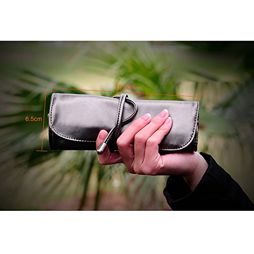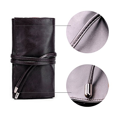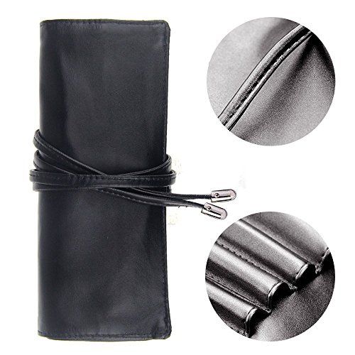 Travelmall Makeup brush rolling case pouch holder Cosmetic bag organizer Travel portable 18 pockets Cosmetics Brushes Black leather case