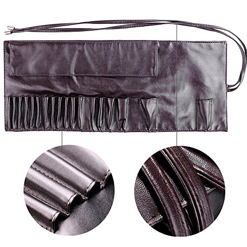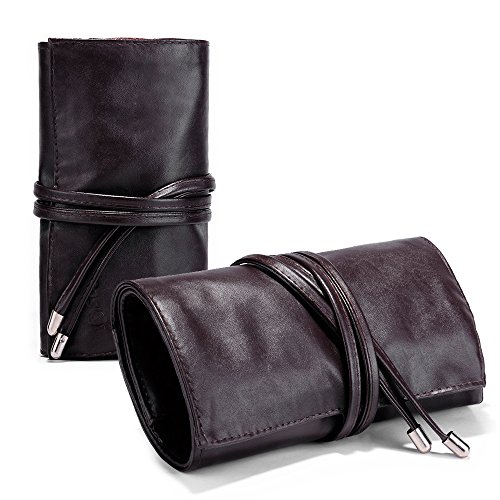 Travelmall Makeup brush rolling case pouch holder Cosmetic bag organizer Travel portable 18 pockets Cosmetics Brushes leather case BROWN Color