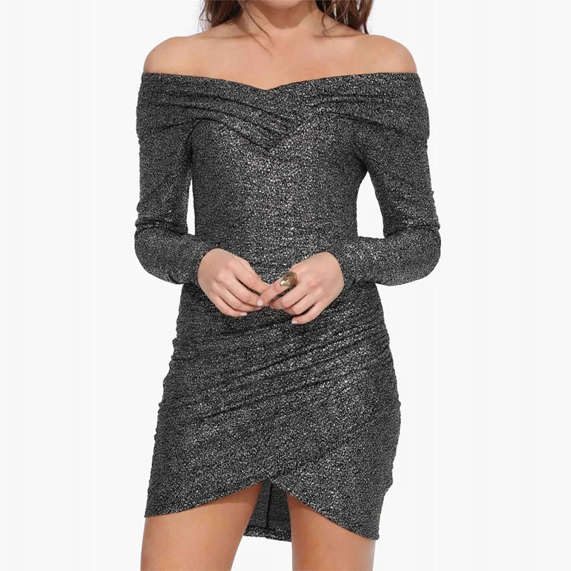 HDY Haoduoyi Gray Mini Dress Women Long Sleeve Off Shoulder V Neck Backless Women Bodycon Dress High Waist Party Club Dress | |||||||||||||||||||||||||||||||||||||||