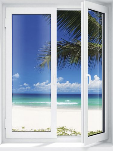 JP London UMB91127 Prepasted Island Getaway Beach Paradise Window Wall Mural, 3-Feet Wide by 4-Feet High