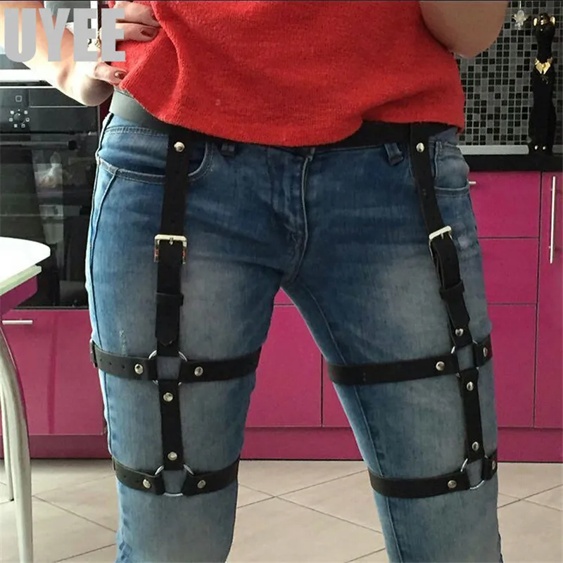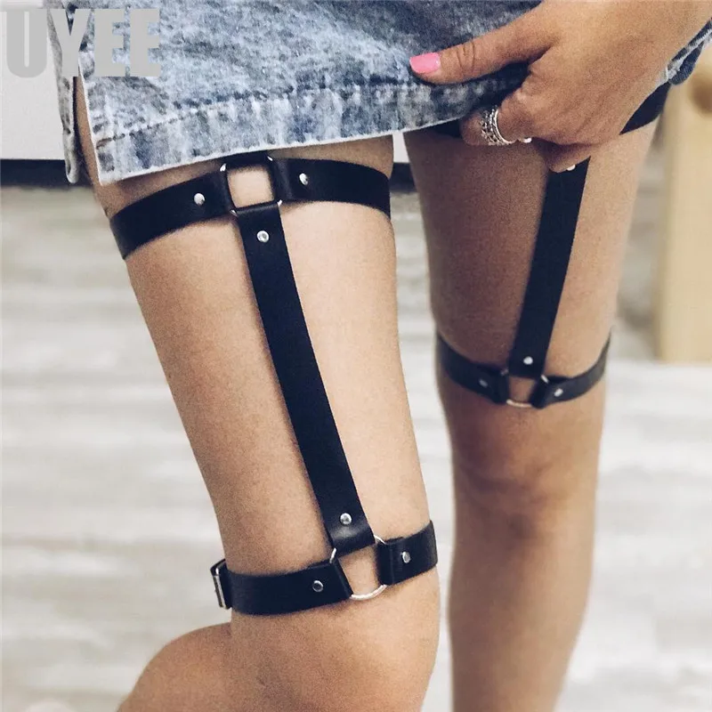 women's genuine pu leather belt: garters for stockings