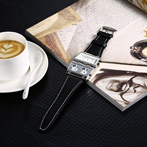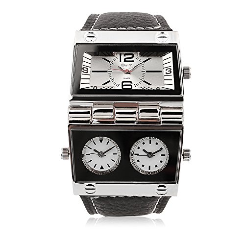 Oulm Rockyu 감정 브랜드 인기 손목시계 워치 맨즈 레이디스 캐주얼 사파이어 유리 블랙 레더 가죽 밴드 [병행수입품]
