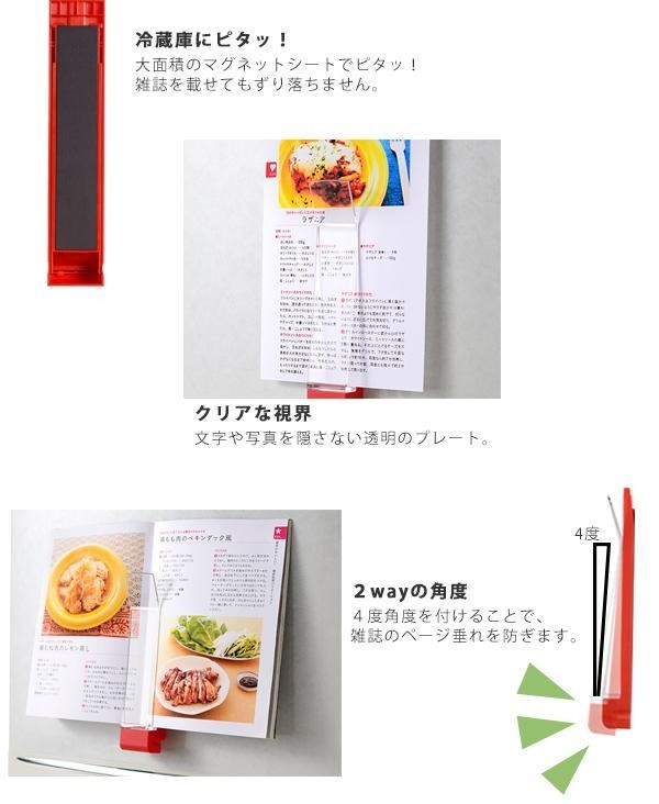 冷蔵庫などにピタッと貼れる、マグネット式のレシピホルダー。本体とプレートの間に挟み込むだけ。プレートは透明なので文字が隠れてしまうストレスもありません!!
