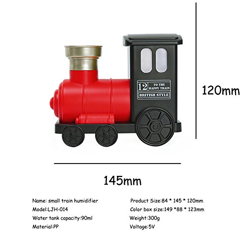 LeRich Mini 90ml 5V DC USB Air Humidifier, Mist Humidifier Cute Retro Train Shape Aromatherapy with USB Cable Home Office Air Purifier for Gift