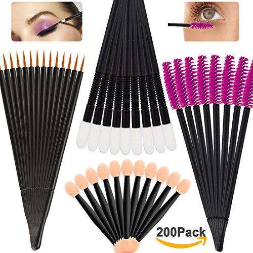 - Package includes 200 pcs disposable makeup brushed in total, including 50 pack Eyelash brushes, 50 pack eyeliner brushes, 50 pack lip brushes and 50 pack dual sided eyeshadow makeup brushes. Easy to use and compact to carry, enough quantity and functions to satisfy your various needs.