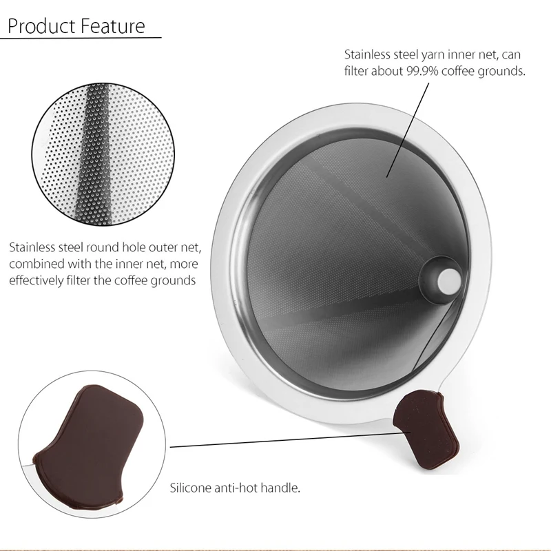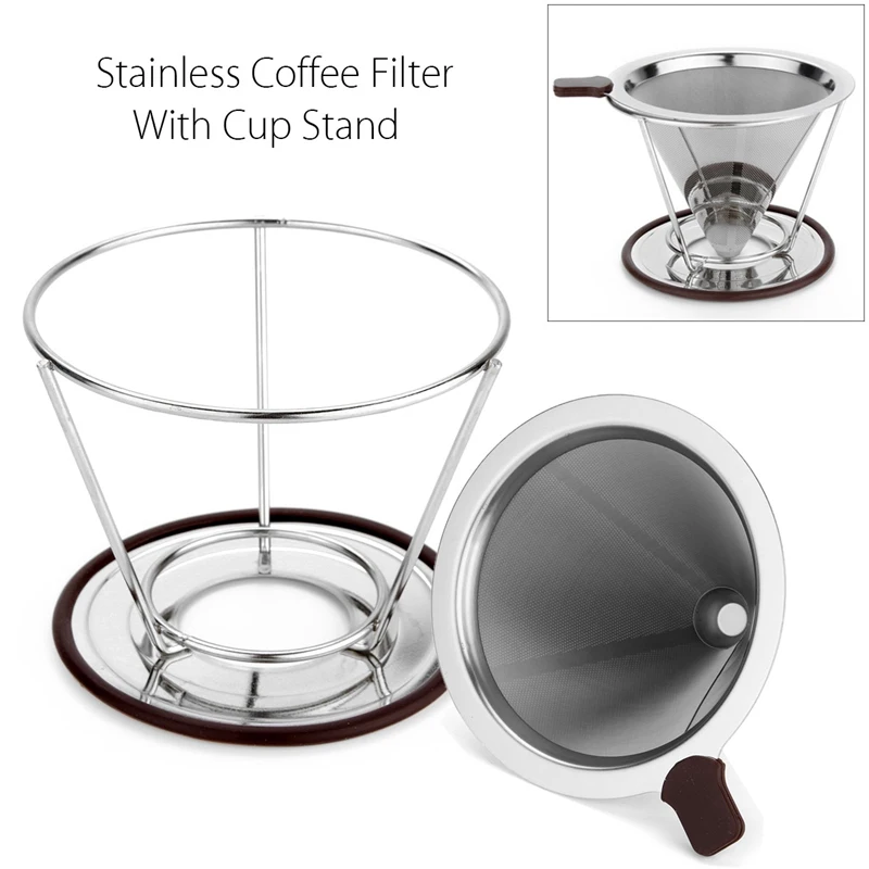 - Material:Stainless Coffee Filter with Cup Stand