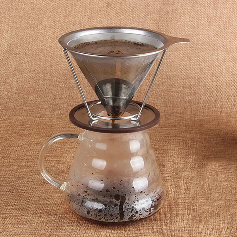Stainless Steel Paperless Pour Over Coffee Filter Reusable Coffee Filter W/Cup Stand Holder