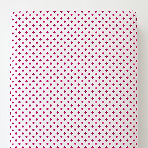 Studio : Carousel Designs Publisher : Carousel Designs Binding : Baby Product Product Description Fitted bottom sheet in Fuchsia Mini Swiss Cross. Our fitted toddler sheets feature deep pockets to hug mattresses securely. Fits toddler beds using standard crib mattresses measuring approximately 28" x 52". 0