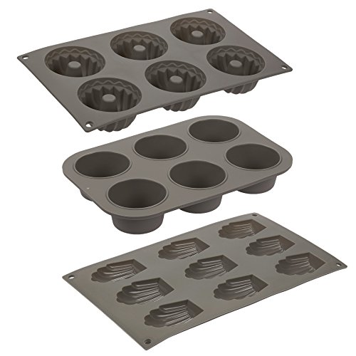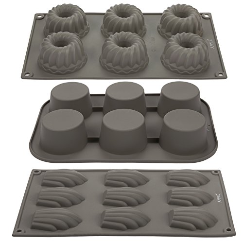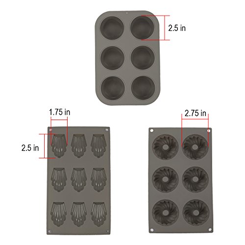 Cupcake Molds / Seashell, Muffin, Bundt Cake Molds - 3 Piece Set - Nonstick Silicone Bakeware Baking Set For Chocolates, Candies, Soap, Pastries - Grey