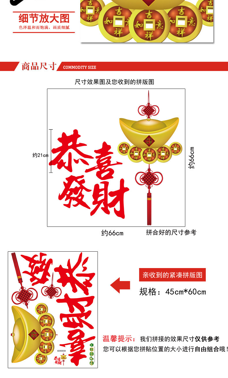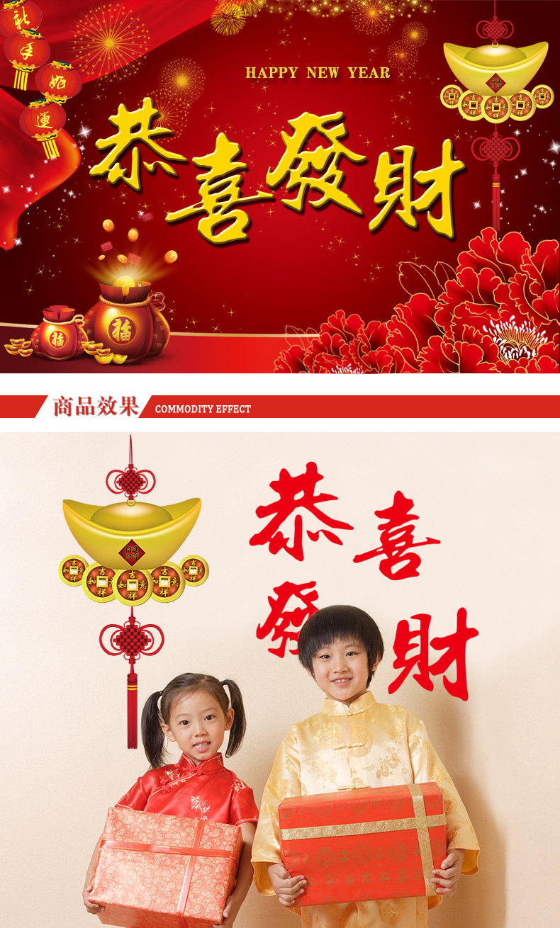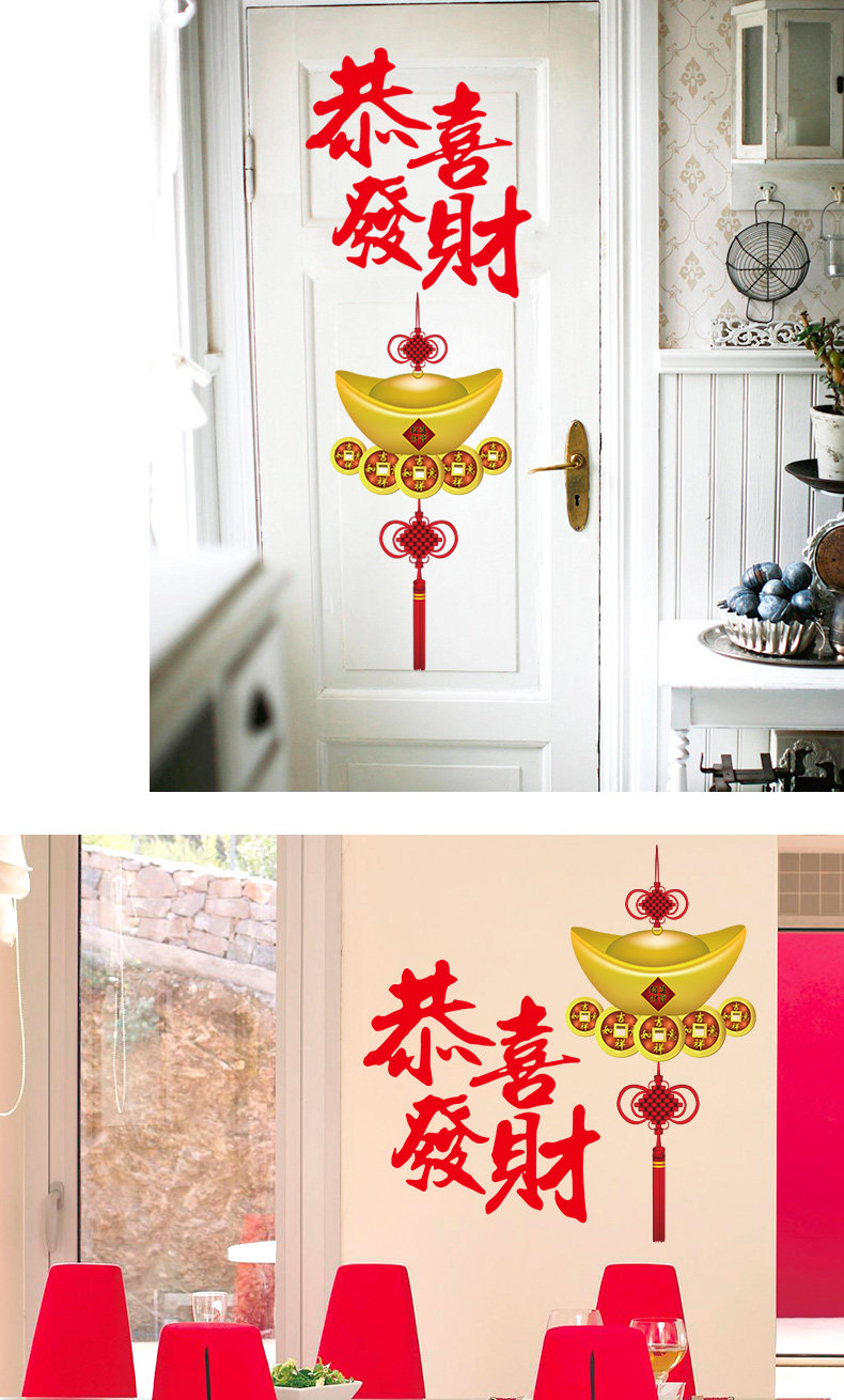 新春元旦装饰品场景布置节日气氛恭喜发财窗户窗花玻璃移门墙贴纸